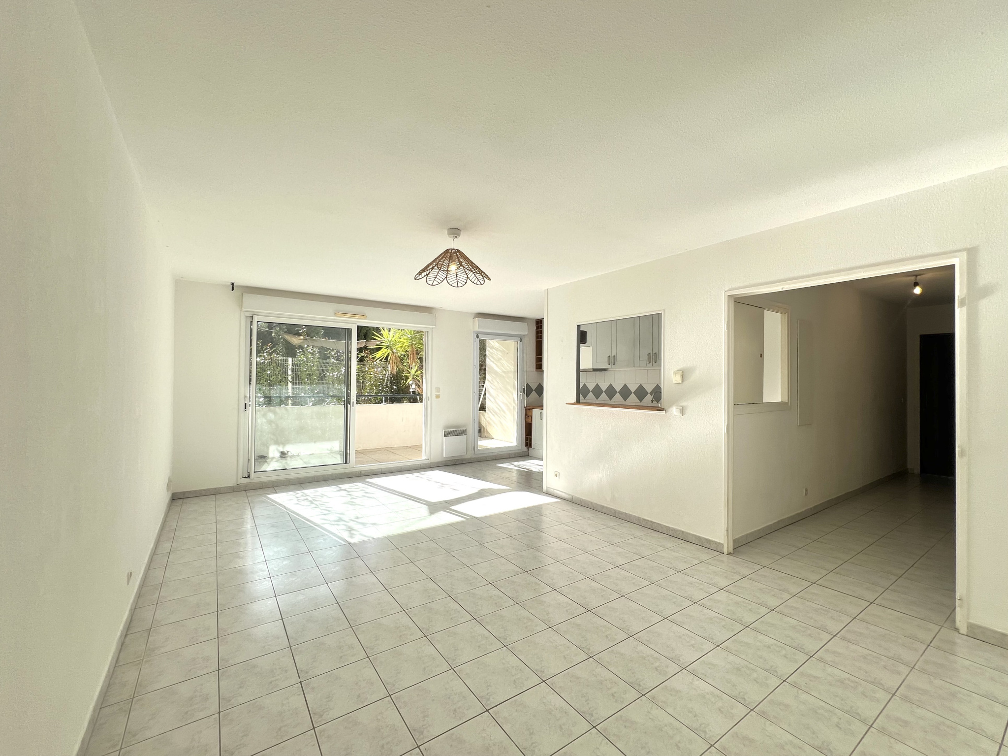 MONTPELLIER Malbosc, dans résidence avec piscine,bel appartement de type 3 traversant, espace de vie avec coin cuisine équipée donnant sur la terrasse et le jardinet, deux chambres avec placards, une salle de bains et toilettes séparés. Un garage et une place de parking en sous sol. Tramway Ligne 1, commerces et services à proximité.