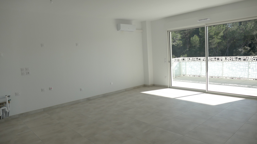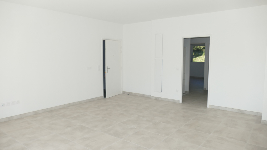 L’appartement se compose d’une entrée, d’un séjour avec cuisine ouverte donnant sur une agréable terrasse de 14,60 m2, de trois chambres avec placards, d’une salle d’eau avec WC, d’une salle de bain équipée d’un placard ainsi que d’une toilette séparée. Deux places de parking en sous sols