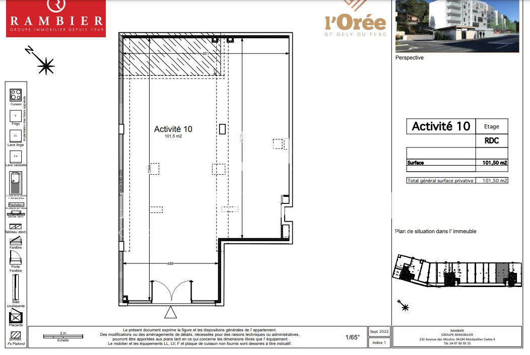 Idéalement situé à l’entrée de Saint Gély du Fesc, dans la résidence neuve l’Orée, ce local commercial de 91.8 m2 avec une vitrine (300X280) vous offre une belle visibilité grâce à son exposition plein sud. Il est composé d’un espace polyvalent à aménager selon vos besoins. L’espace est modulable, avec des travaux à prévoir pour une personnalisation complète du local selon votre activité.