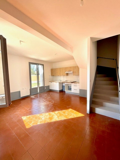 A louer Dans une résidence sécurisée, charmante maison neuve de type 4 de 82.55 m2 sur la commune de Bouzigues. Cette maison lumineuse propose, un séjour prolongé d’une terrasse et d’un agréable jardin. Cuisine ouverte aménagée et équipée (plaque à induction, hotte, meubles de rangement), une chambre avec salle d’eau et wc. A l’étage, un agréable couloir de distribution avec fenêtre donnant accès à deux grandes chambres avec placards et une salle de bains avec wc. La maison est louée avec deux places de parking en extérieur et un abri vélos commun. Disponible mi Février , n’hésitez pas à joindre le service location de l’agence RAMBIER IMMOBILIER.