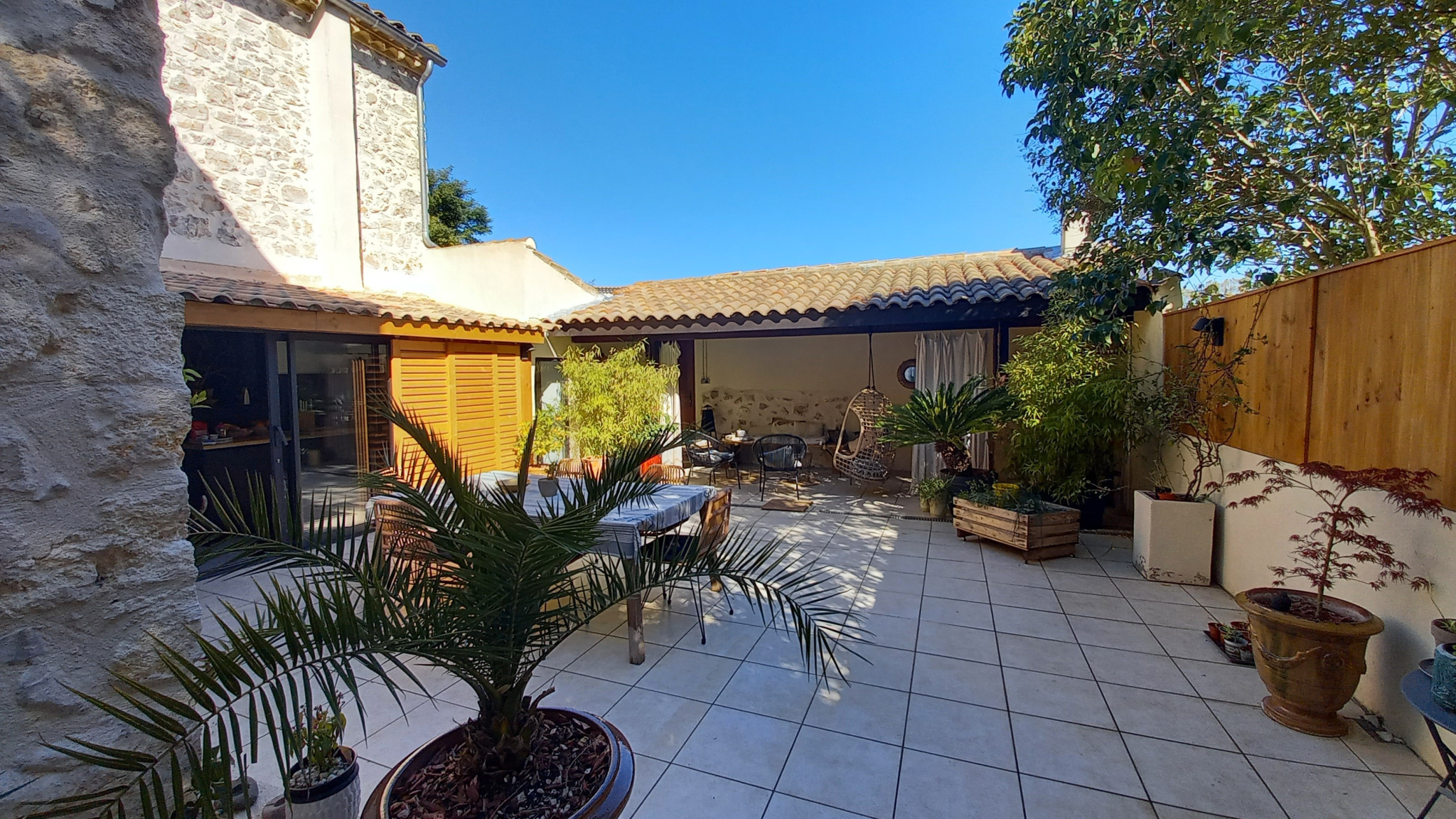 Dans le centre de Saint Mathieu de Tréviers, magnifique et unique maison en pierre, pleine de charme et entiérement rénovée avec soin. Comprenant au rez de chaussée: une entrée, un séjour/cuisine avec accés sur un patio, un salon avec pierres apparentes, une suite parentale avec placards, salle d’eau et des toilettes séparés. A l’étage se trouve une chambre, une suite parentale avec salle de bain et toilettes, et un grand bureau. Un garage pour motos ou vélos. L’espace exterieur sans vis à vis de 75m2 comprend une partie couverte avec barbecue et possibilité d’installer un jacuzzi.