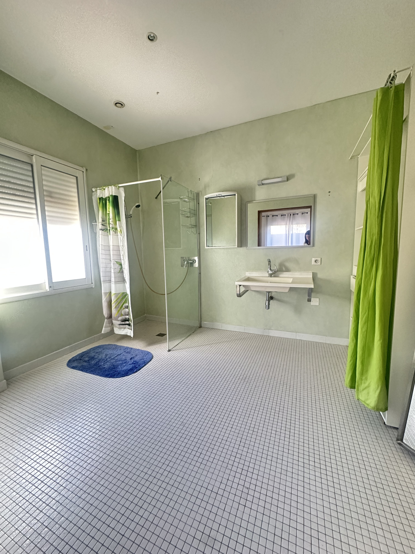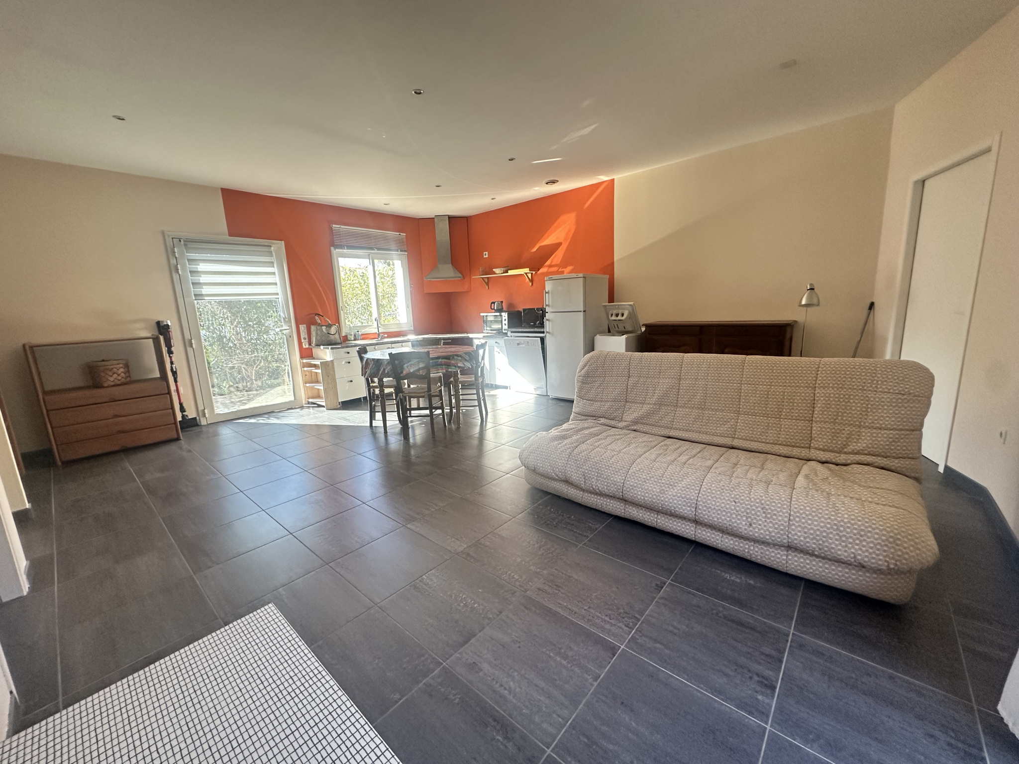 Comprenant : une cuisine aménagée et équipée ouverte sur une belle pièce de vie, une chambre avec salle d’eau et wc attenants, une terrasse faisant le tour de la maison.
