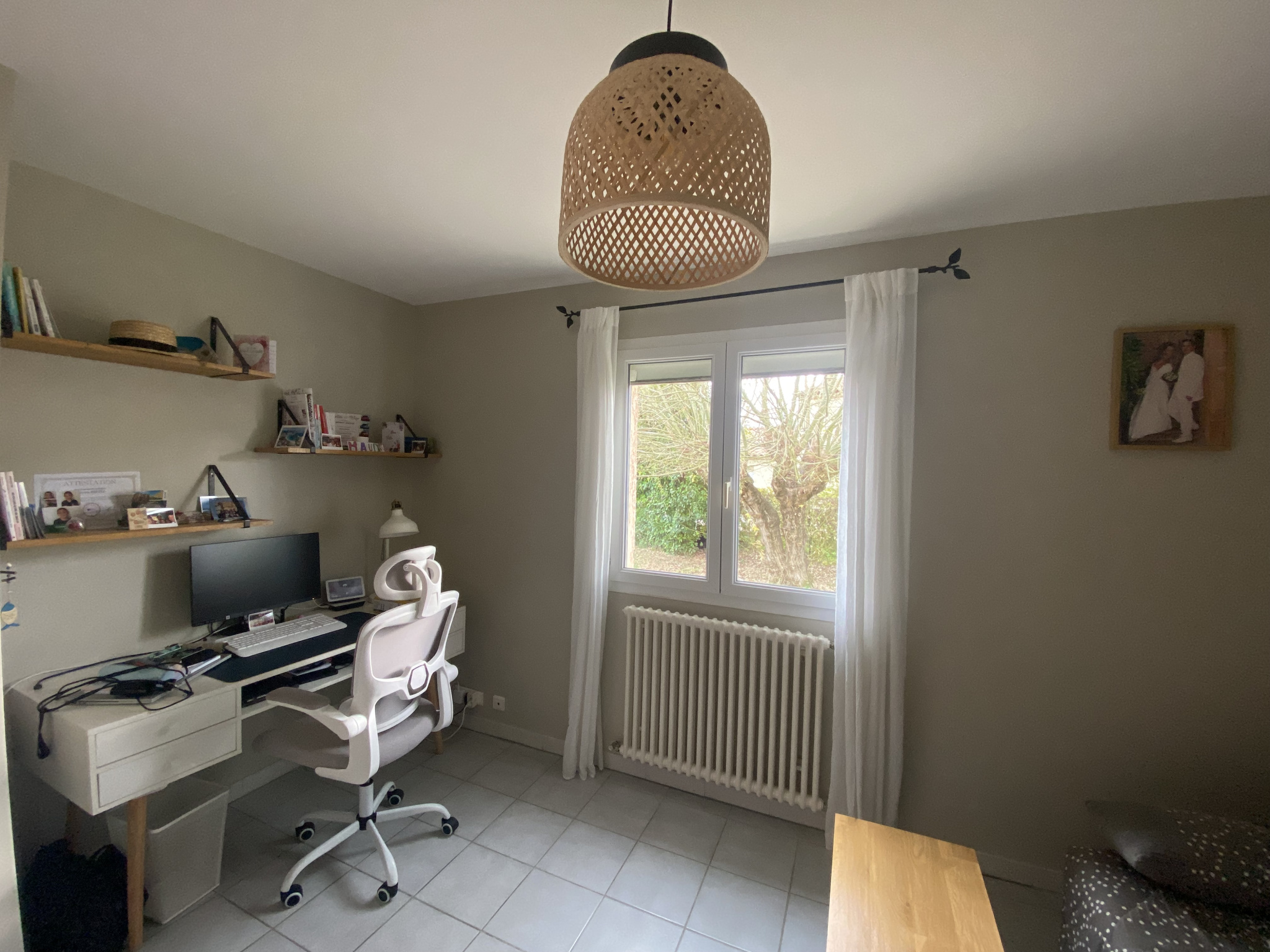 La maison est équipée de nombreux placards et de pièces de rangement tel qu’un grand cellier et un garage.